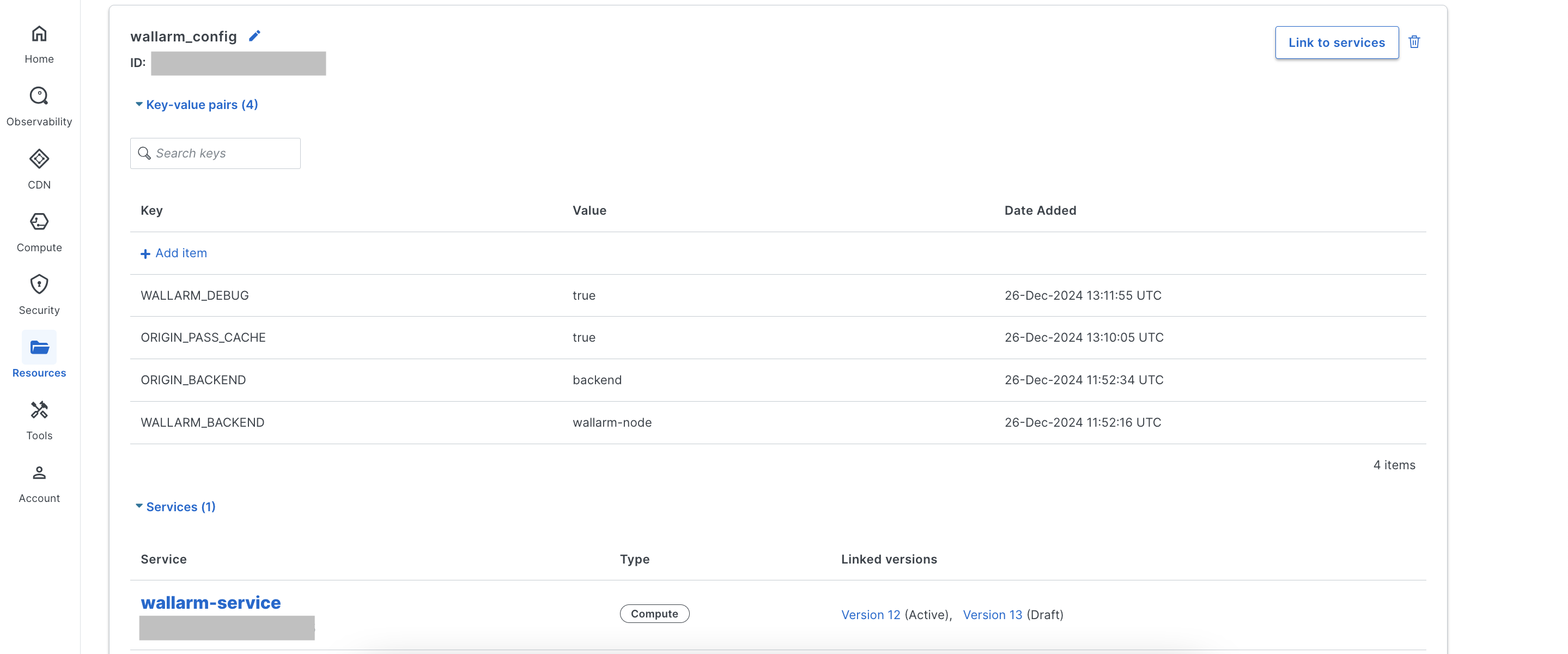 Link the KV store to the Wallarm Compute service.