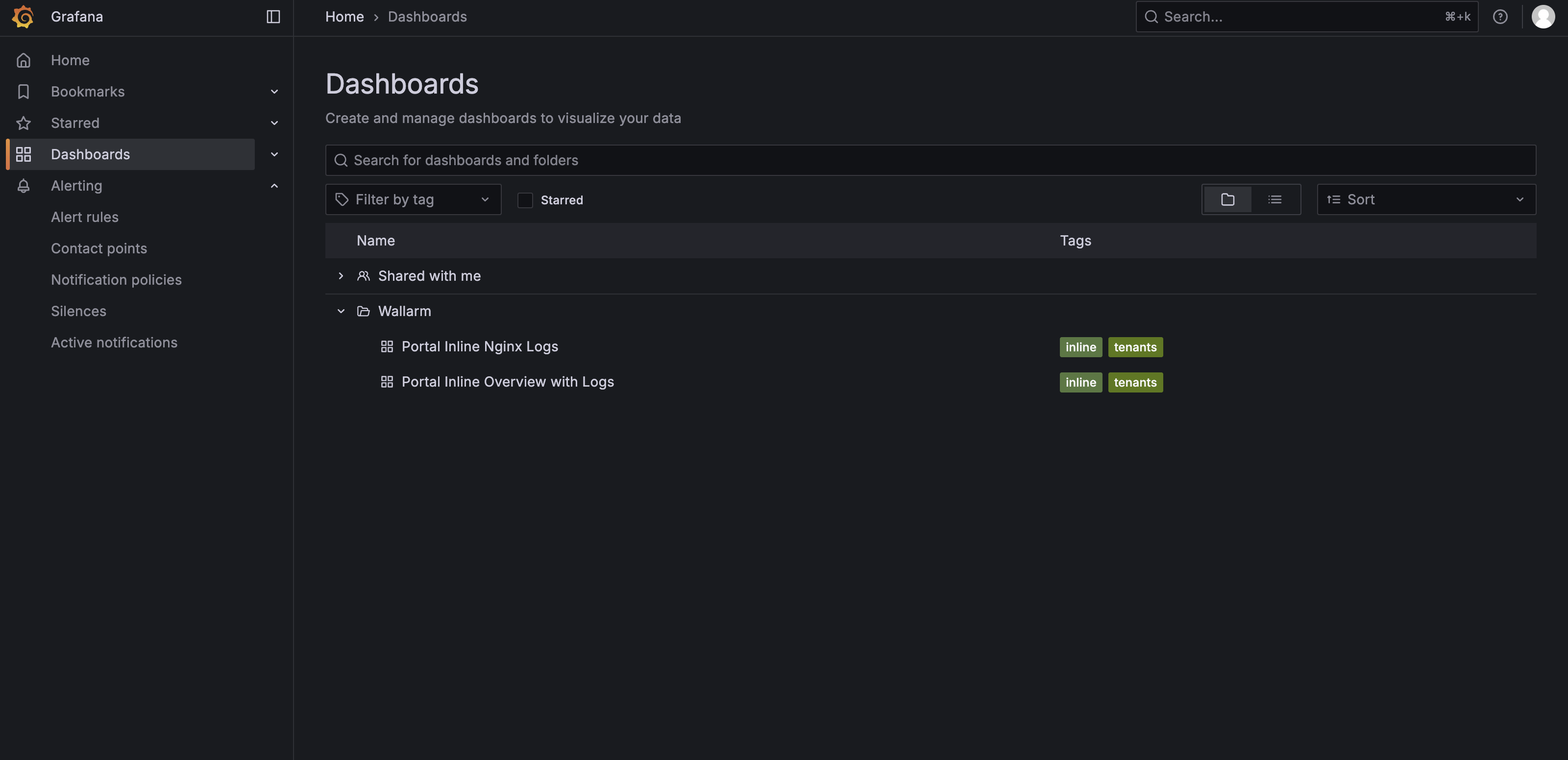 From the Grafana home page, to reach the dashboard, navigate to DashboardsWallarm.